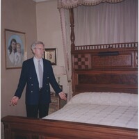 - Neil Baldwin standing in a bedroom within the Thomas Edison National Historical Park.