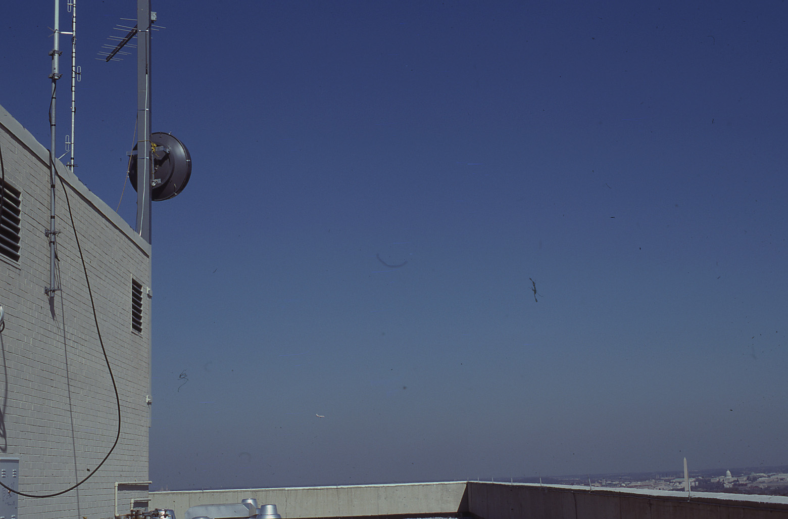 A view from the rooftop of Tower Villas in Arlington, Virginia, where they are positioning C-SPAN's microwave receive and transmission equipment.