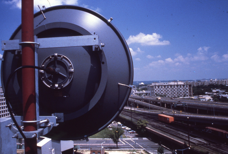 C-SPAN's microwave receive and transmission equipment sit on the rooftop at Tower Villas in Arlington, Virginia as part of positioning the equipment.