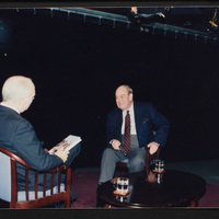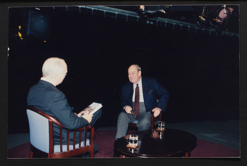 Brian Lamb sits with journalist Charles Kuralt when Kuralt appeared on Booknotes to discuss his book "Charles Kuralt's America."
