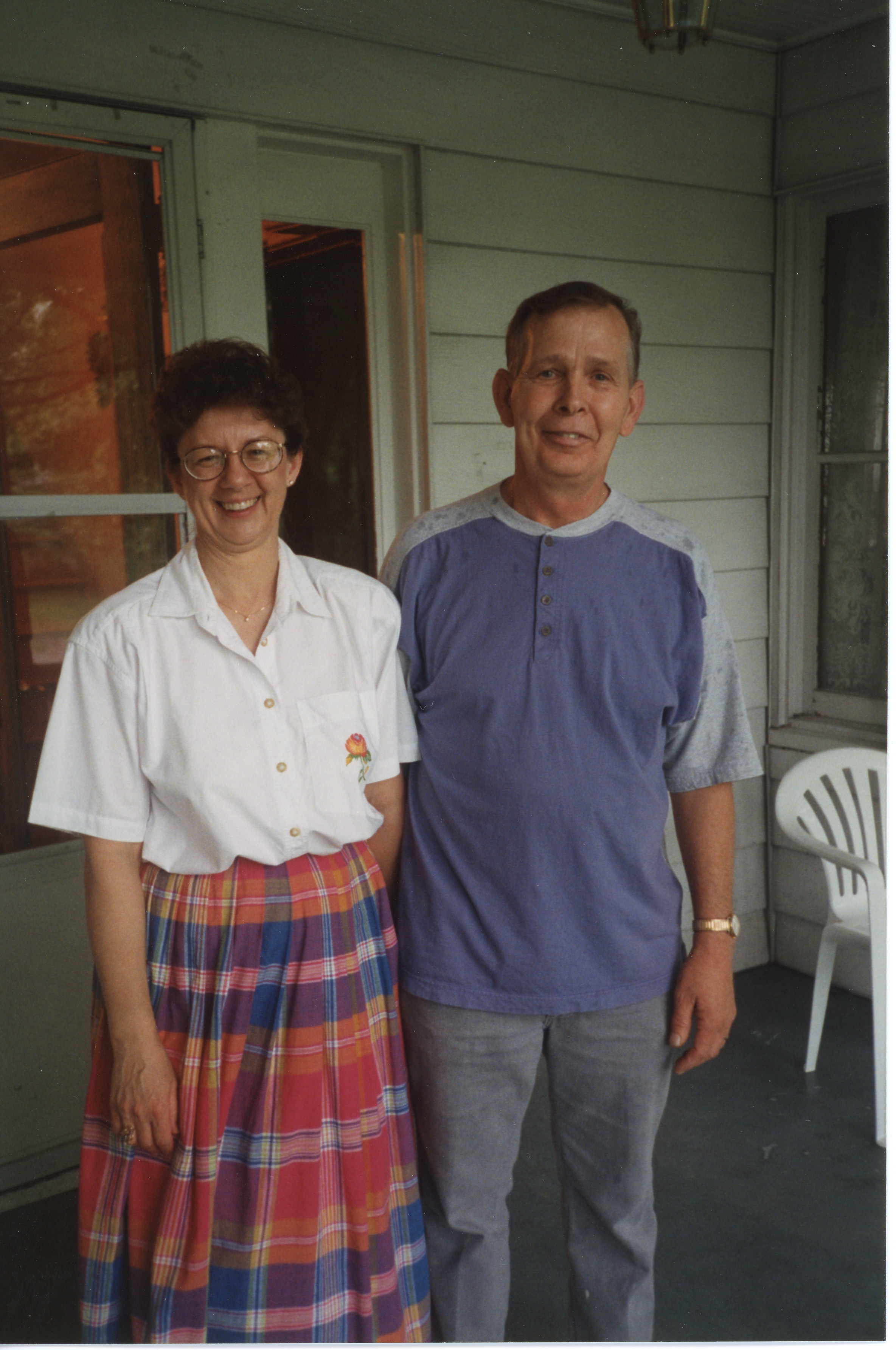 Two people posing on porthc, Jonesboro, Illinois