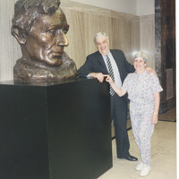 People with Lincoln bust, Jonesboro, Illinois