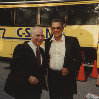 Brian Lamb and person with C-SPAN School Bus, Jonesboro, Illinois