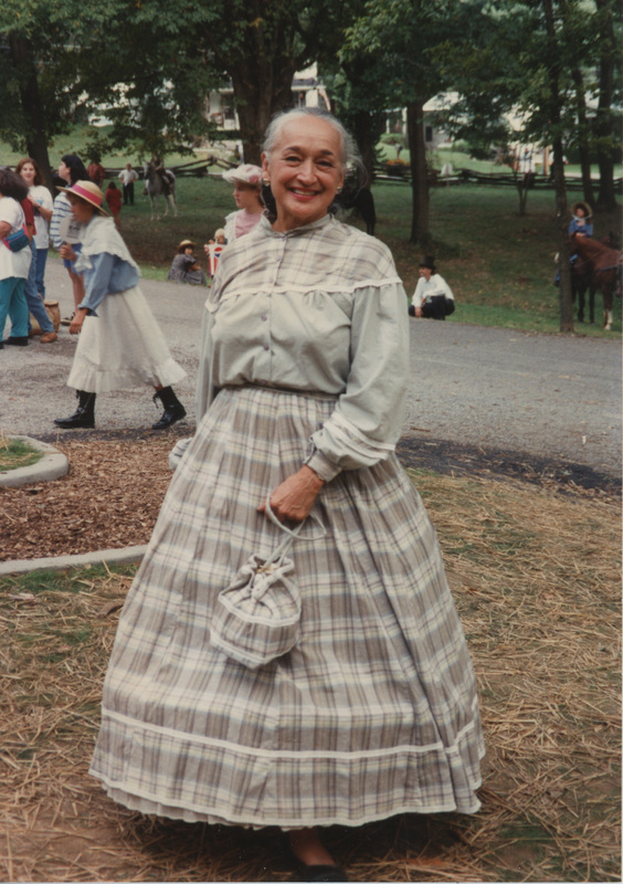 Person in period clothing outdoors, Jonesboro, Illinois