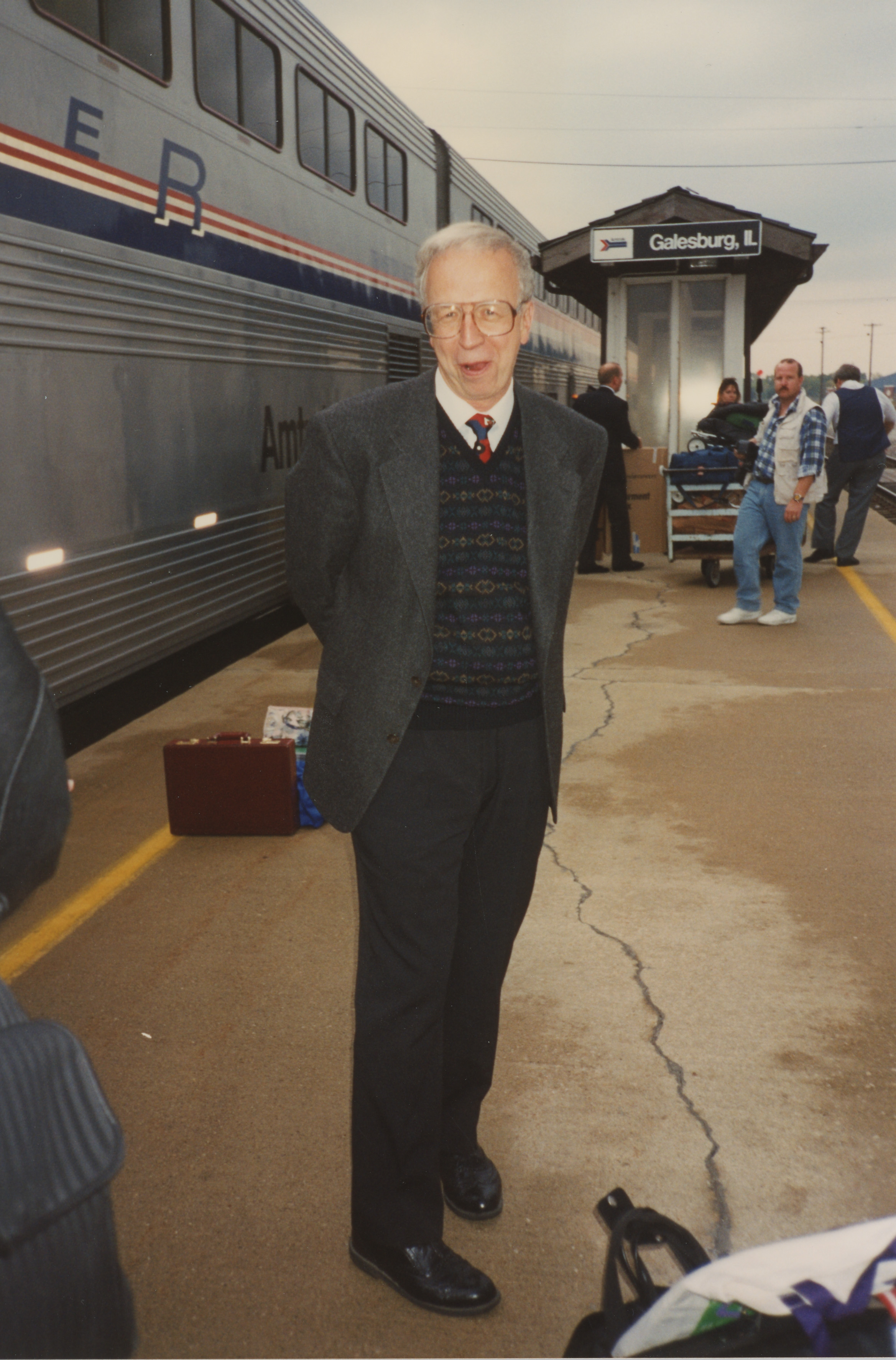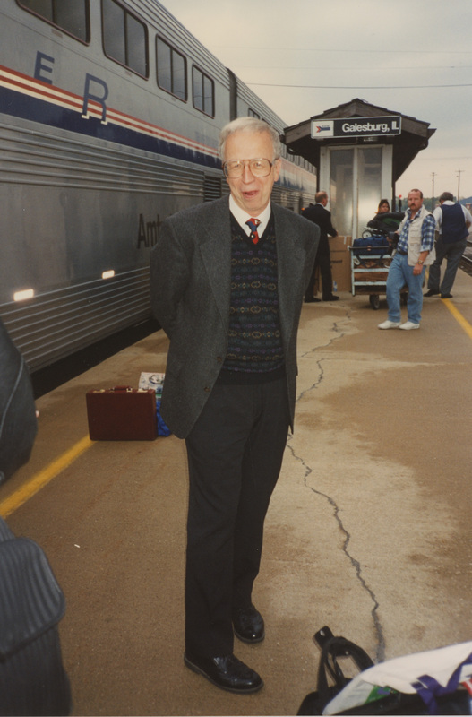 Person on train platform, Galesburg, Illinois