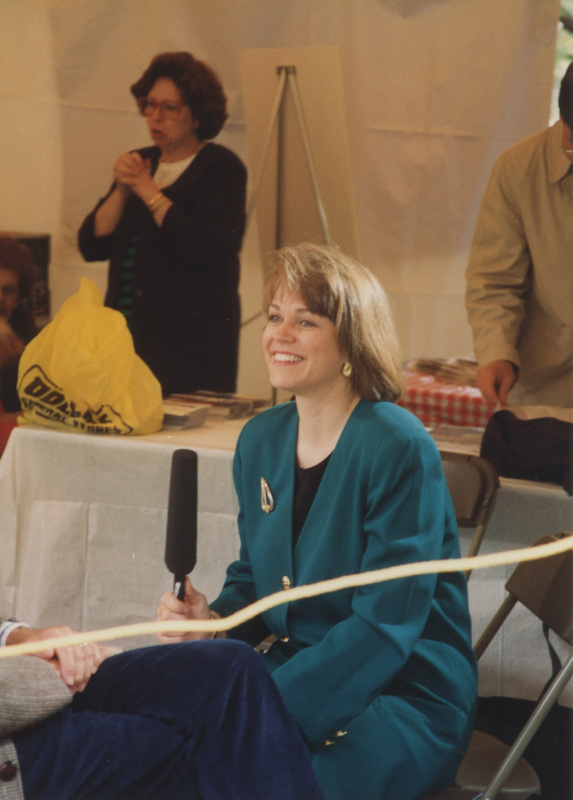 Susan Swain sits while holding a microphone. This photograph was taken as part of filming C-SPAN's Lincoln-Douglas Debates series in Galesburg, Illinois.