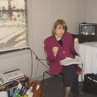 Susan Sain reading papers, Quincy, Illinois