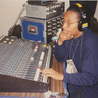 Sherry Sanders-Smith at mixing board, Quincy, Illinois