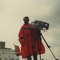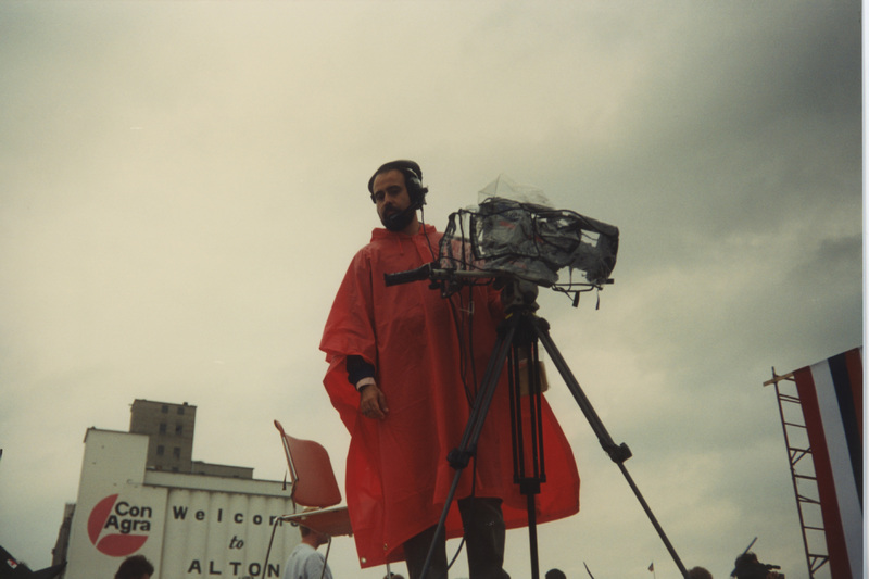 Cameraperson working in rain, Alton, Illinois