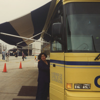 A person stands at the entrance of the C-SPAN Bus. This photograph was taken as part of filming C-SPAN's Lincoln-Douglas Debates series in Alton, Illinois.