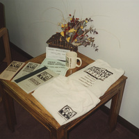 A table of Lincoln-Douglas Debates merchandise laid out. This photograph was taken as part of filming C-SPAN's Lincoln-Douglas Debates series in Alton, Illinois.