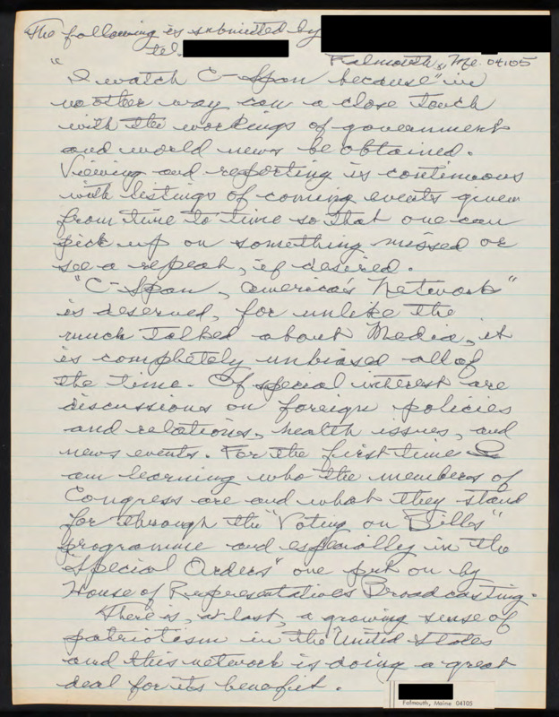 Viewer entry for "Why I Watch C-SPAN" contest.