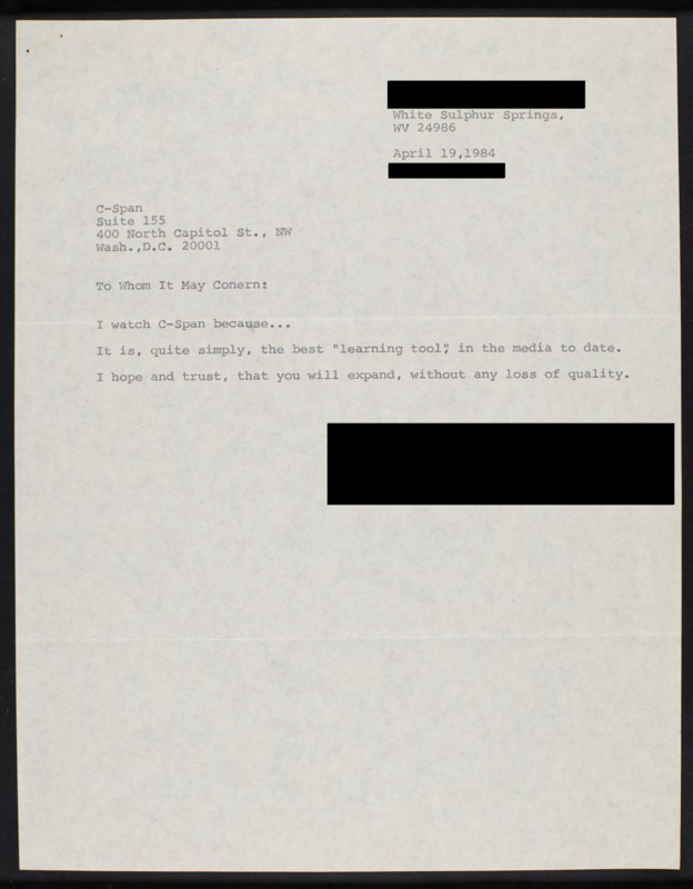 Viewer entry for "Why I Watch C-SPAN" contest.