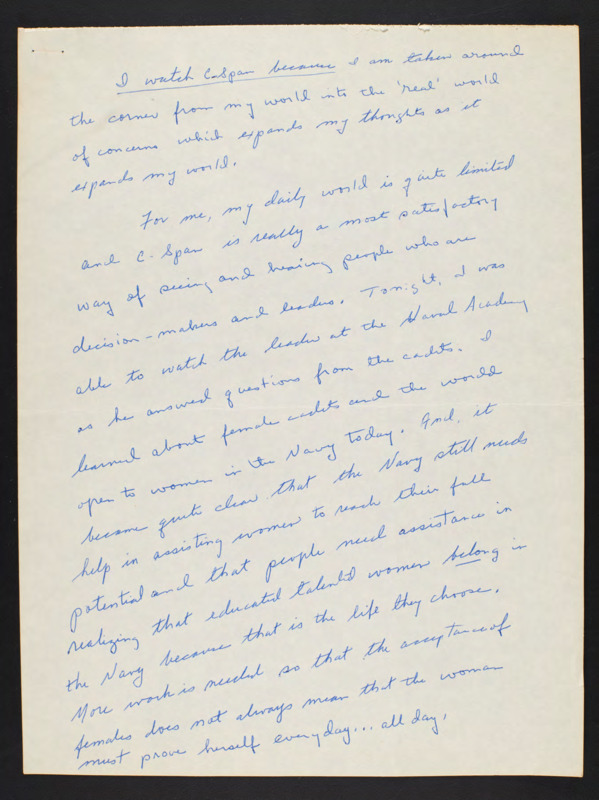 Viewer entry for "Why I Watch C-SPAN" contest.