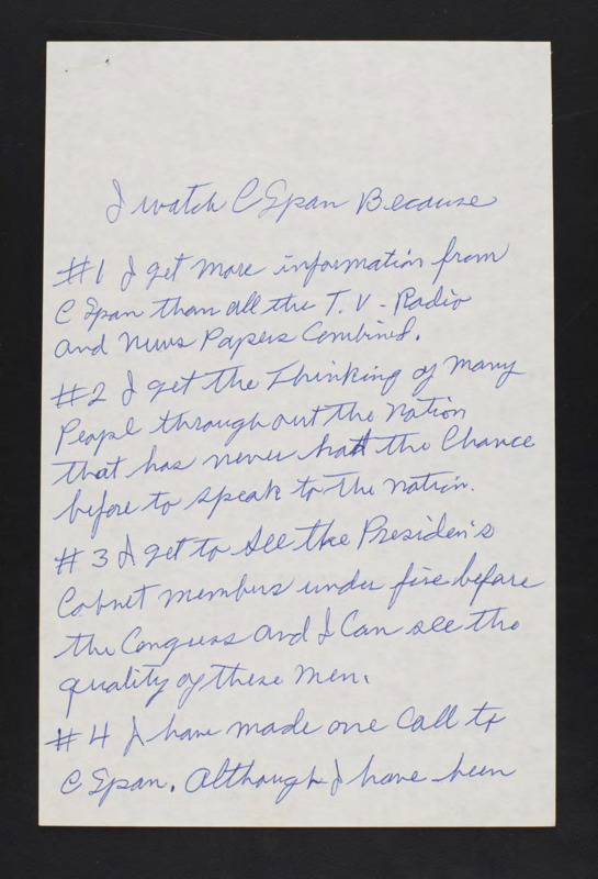 Viewer entry for "Why I Watch C-SPAN" contest.