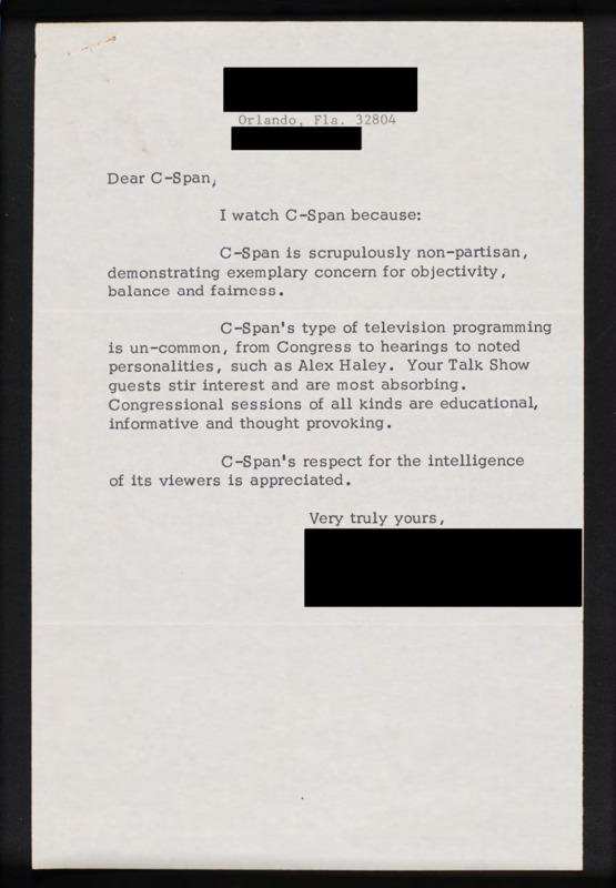 Viewer entry for "Why I Watch C-SPAN" contest.