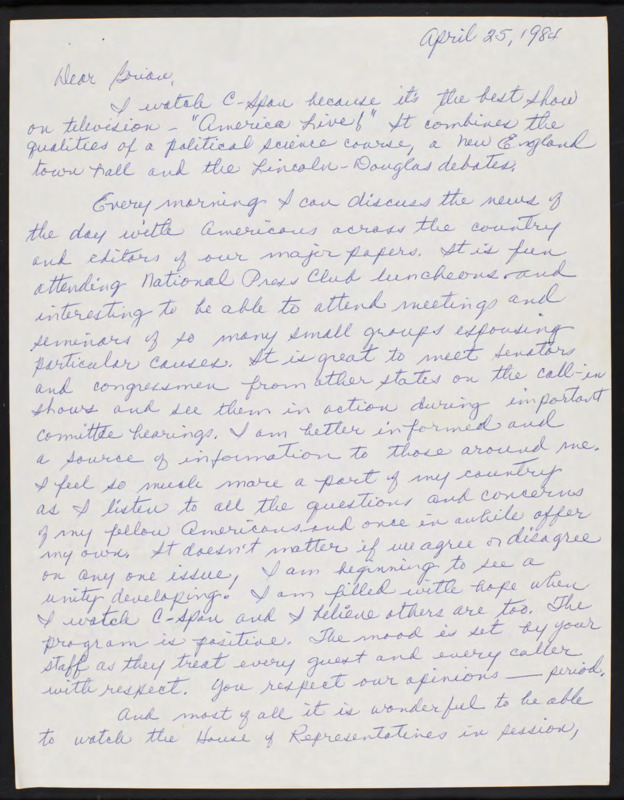 Viewer entry for "Why I Watch C-SPAN" contest.