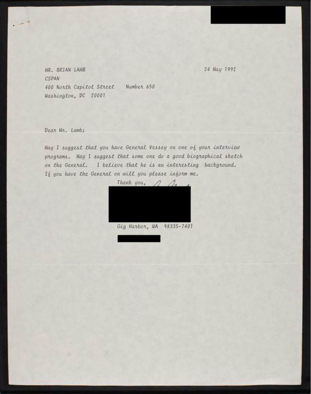 Letter to C-SPAN, 1992-05-24; 98335