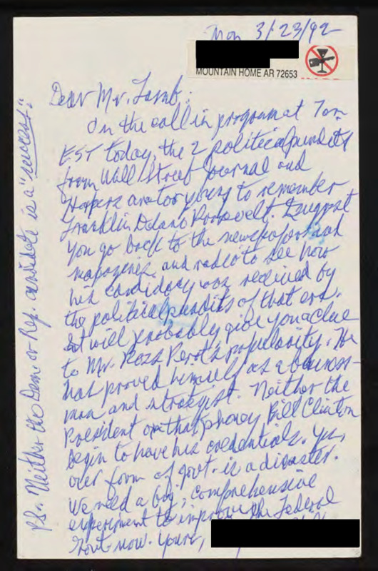 Explains Ross Perot's popularity for Presidential candidacy compared to Bush and Clinton.