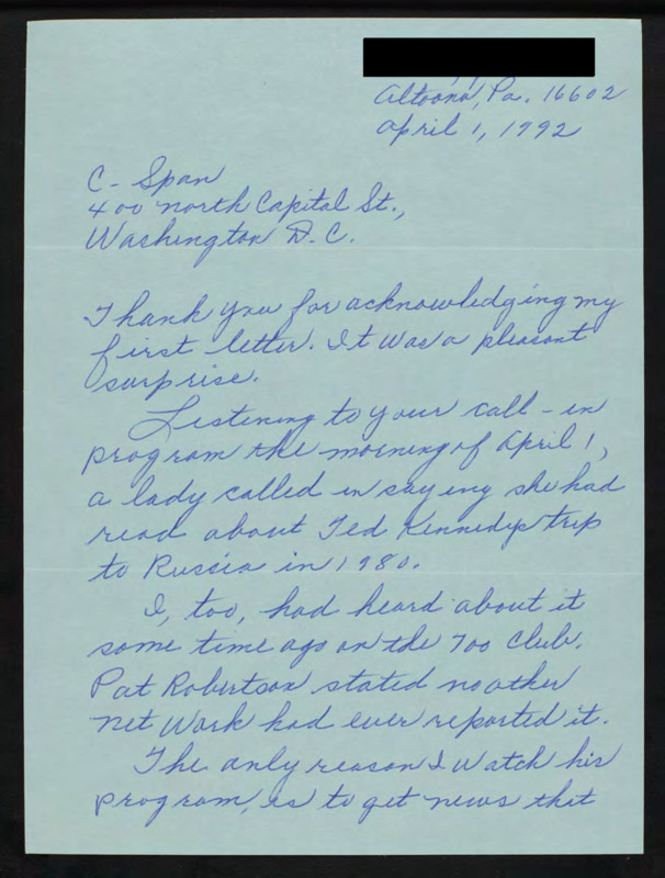 References a story from the 700 Club concerning Ted Kennedy's trip to Russia in 1980 in response to a comment from a caller.
