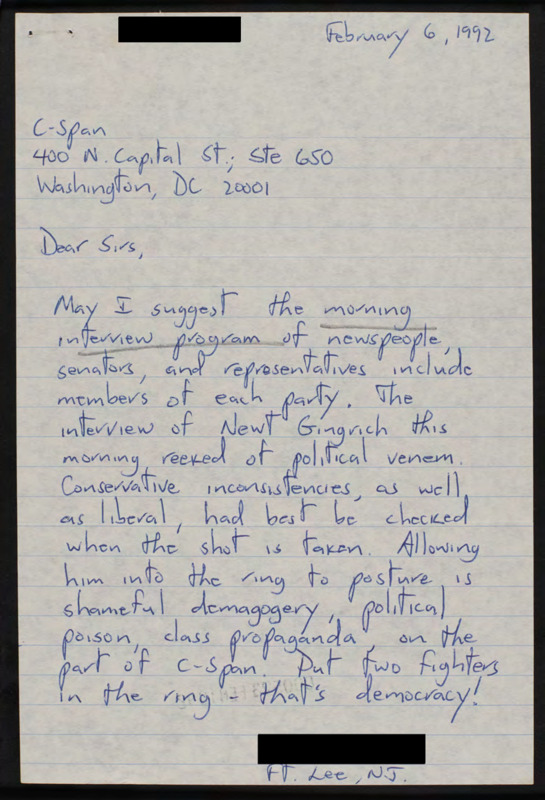 Suggests that the morning interview program feature representatives from each political party in response to a Newt Gingrich appearance.
