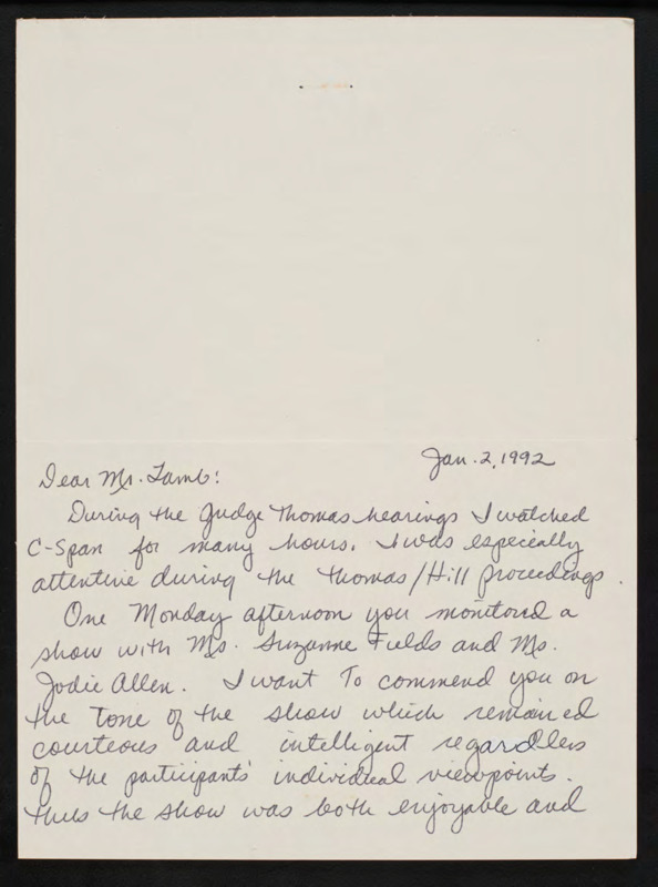 Letter to C-SPAN, 1992-01-02; 47591