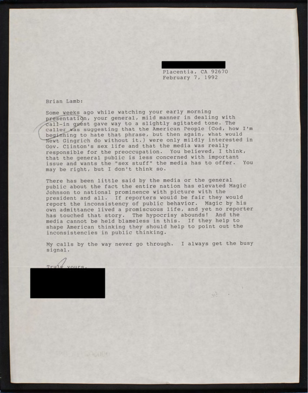 Discusses the inconsistencies in public thinking in reference to a statement about the public's preoccupation with Bill Clinton's sex life.
