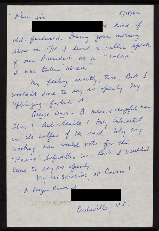Letter to C-SPAN, 1992-05-18; 28801