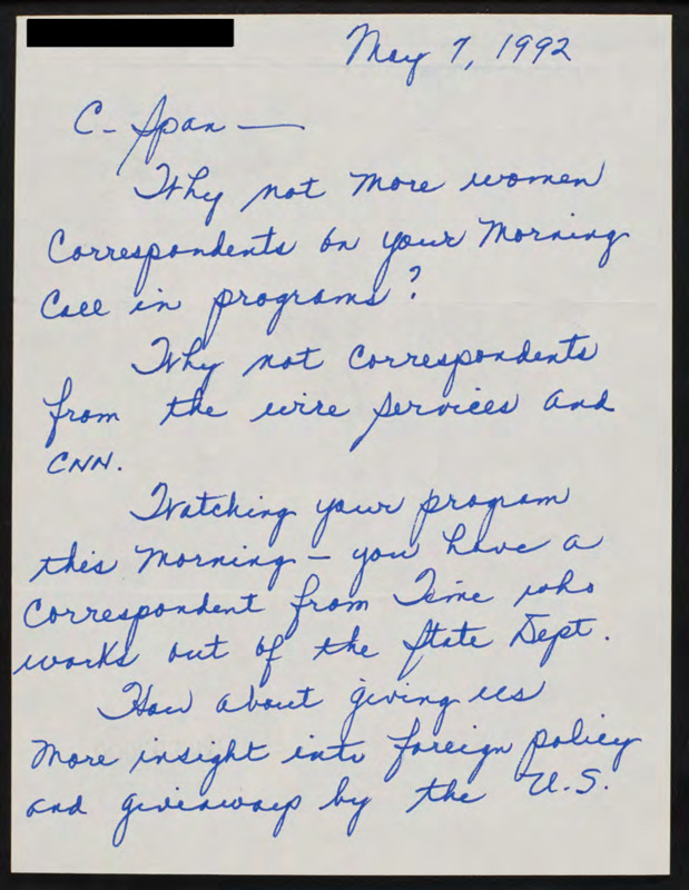 Letter to C-SPAN, 1992-05-07; 06830