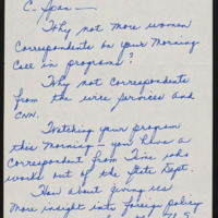 Asks why C-SPAN does not have more women correspondents or coverage of foreign policy.
