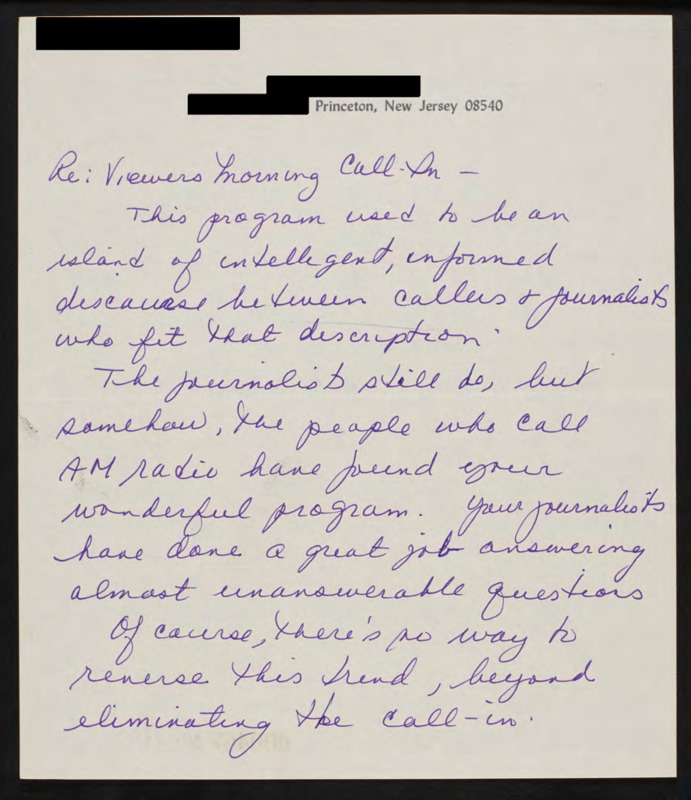 Complains that unintelligent viewers are ruining the call-in shows with unanswerable questions.