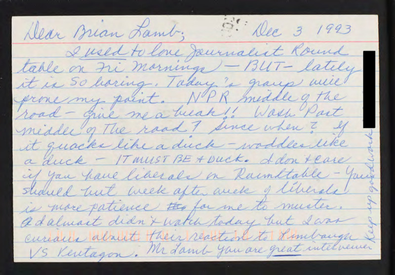 Letter to C-SPAN, 1993-12-03; 92069