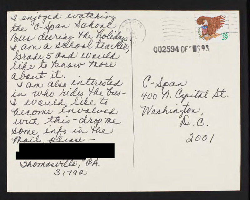 Letter to C-SPAN, 1993-12-01; 31792
