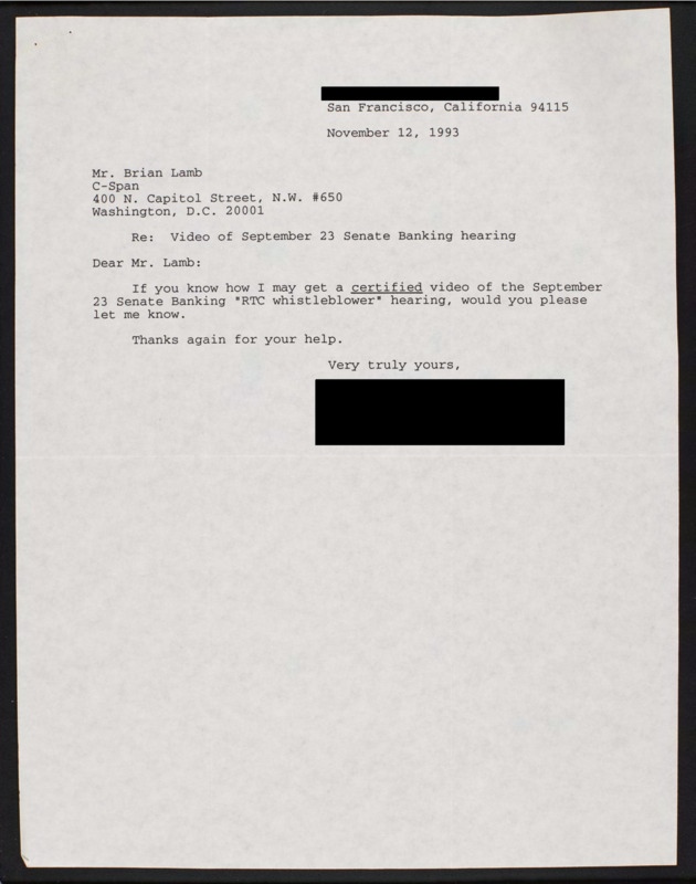 Asks for information about obtaining tape of program in which Senate questioned the RTC whistleblower.
