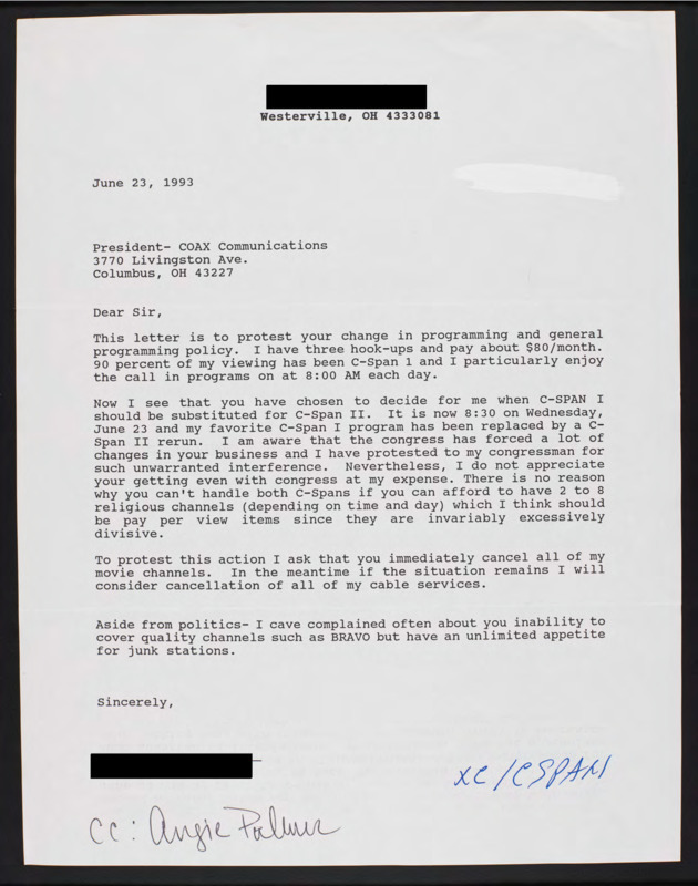 Letter to C-SPAN, 1993-06-23; 43081