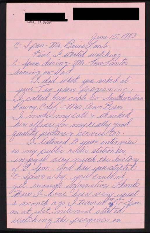 Letter to C-SPAN, 1993-06-15; 92054