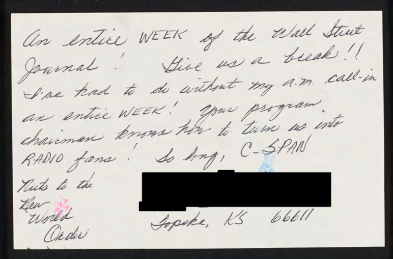 Letter to C-SPAN, 1994-01-19; 66611