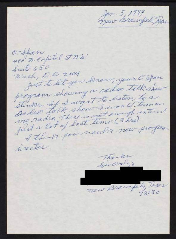 Letter to C-SPAN, 1994-01-05; 78130