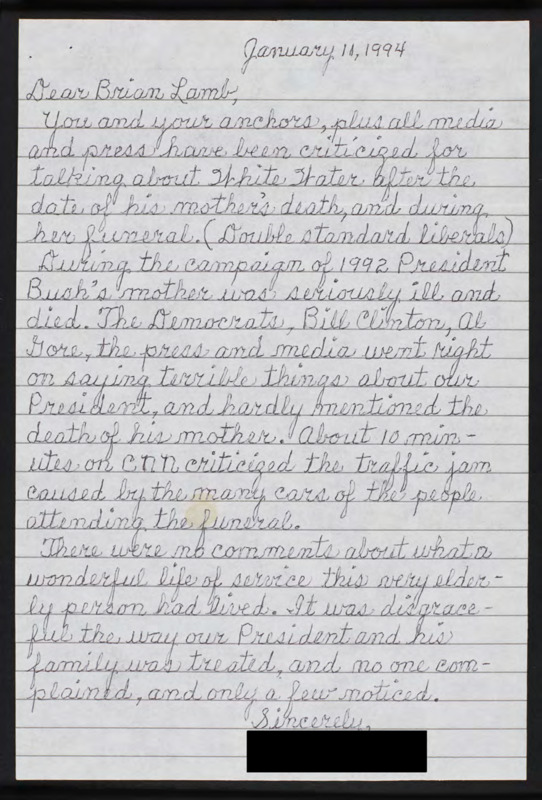 Letter to C-SPAN, 1994-01-11; 64507