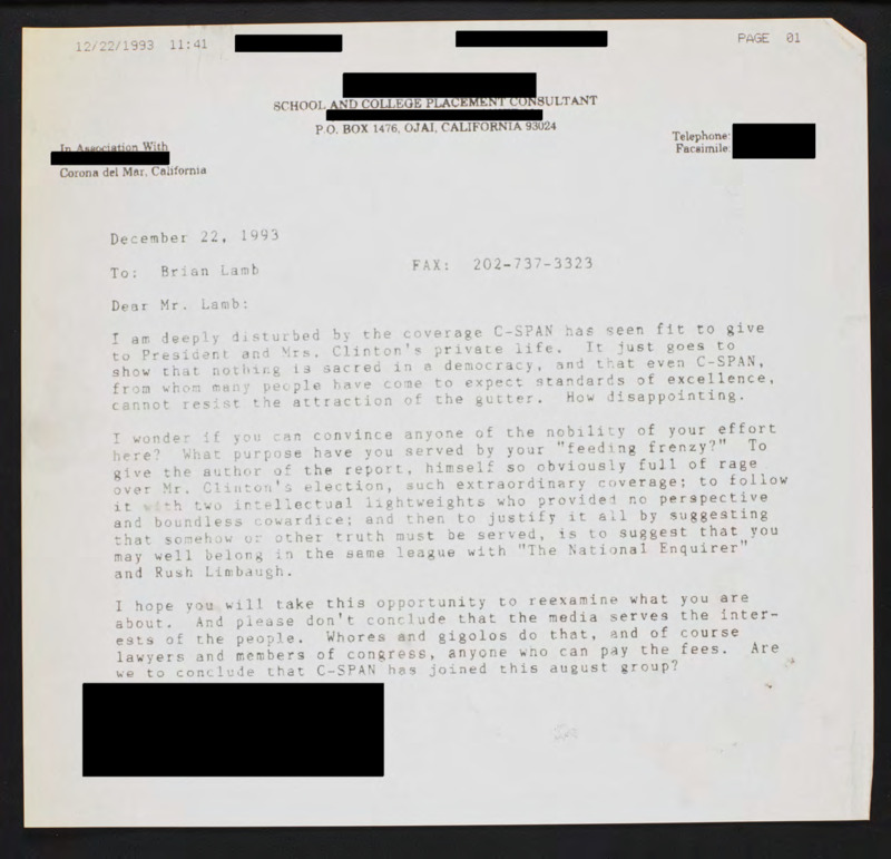 Letter to C-SPAN, 1993-12-22; 93024