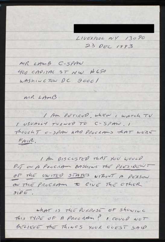 Letter to C-SPAN, 1993-12-23; 13090