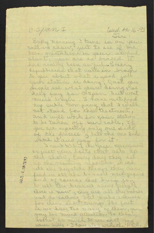 Letter to C-SPAN, 1993-06-16