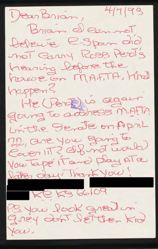 Expresses discontent with C-SPAN for not broadcasting Ross Perot's speech at the Senate regarding NAFTA.