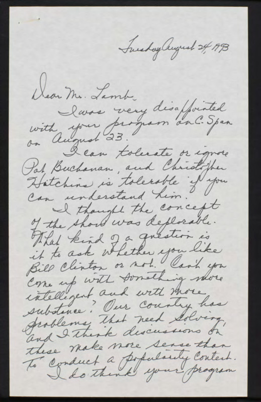 Letter to C-SPAN, 1993-08-24; 61348