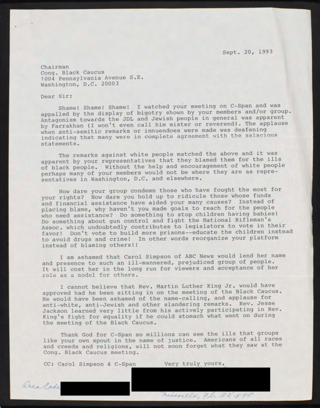 Letter to C-SPAN, 1993-09-20; 32578