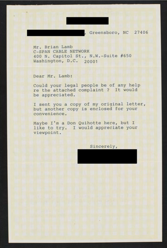 A group of letters concerning the FCC forcing AT&T to investigate an individuals complaint about being disconnected from C-SPAN's call in programs.