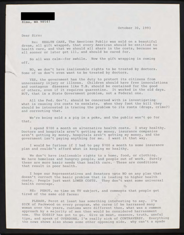 Opposes universal health care and says NAFTA will increase personal taxes.