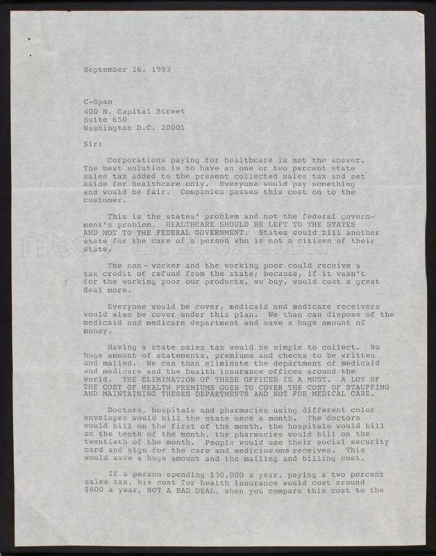 Letter to C-SPAN, 1993-09-26; 46526