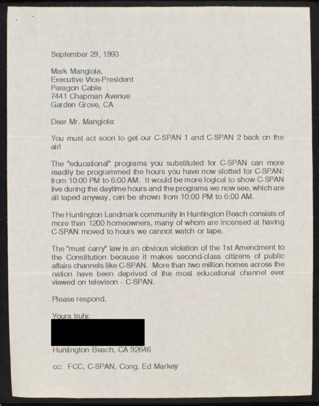 States the "must carry" law is depriving people of the most educational network, C-SPAN.