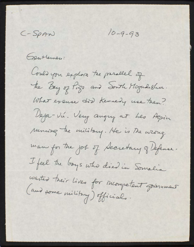 Letter to C-SPAN, 1993-10-09